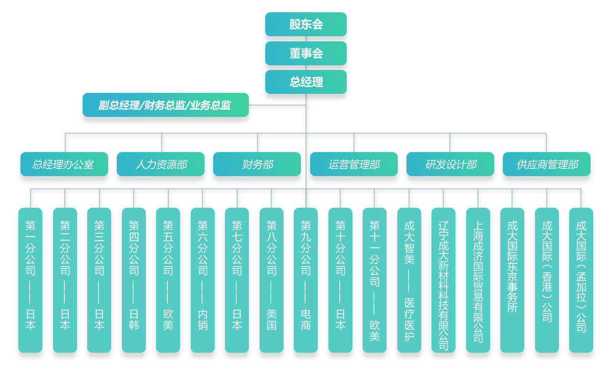遼寧成大國際貿(mào)易有限公司是繼承遼寧成大股份有限公司原有主營業(yè)務(wù)——紡織服裝進(jìn)出口貿(mào)易,改制成立的控股子公司。30年來,成大國際已由傳統(tǒng)的紡織服裝貿(mào)易公司發(fā)展成為具備研發(fā)設(shè)計(jì)、前沿營銷、跨國采購和物流服務(wù)為一體的增值貿(mào)易服務(wù)商,為客戶提供一站式整體解決方案。公司總部位于大連,在上海、東京設(shè)有全資子公司。